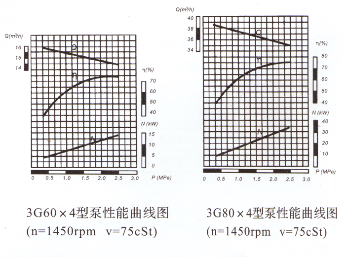 3G系列三螺桿泵性能曲線(xiàn)圖: